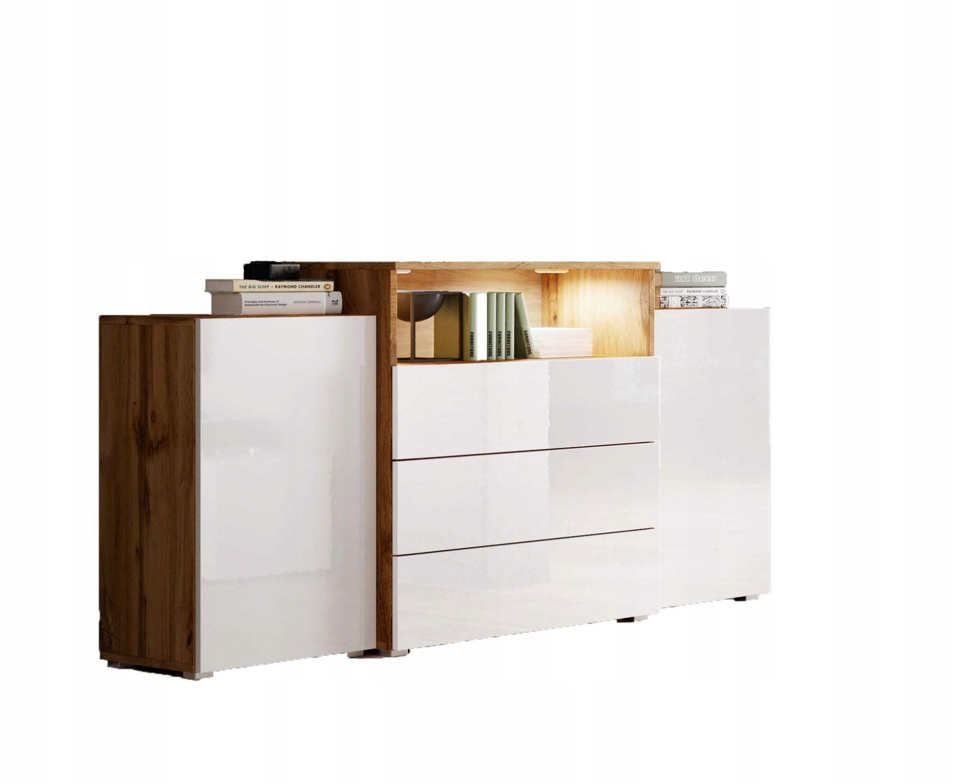 Komoda URBAN w kolorze dąb wotan - biały połysk 150 cm